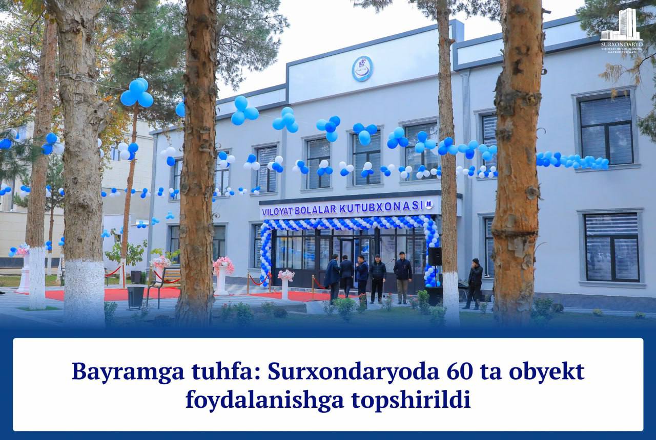 Bayramga tuhfa: Surxondaryoda 60 ta obyekt foydalanishga topshirildi