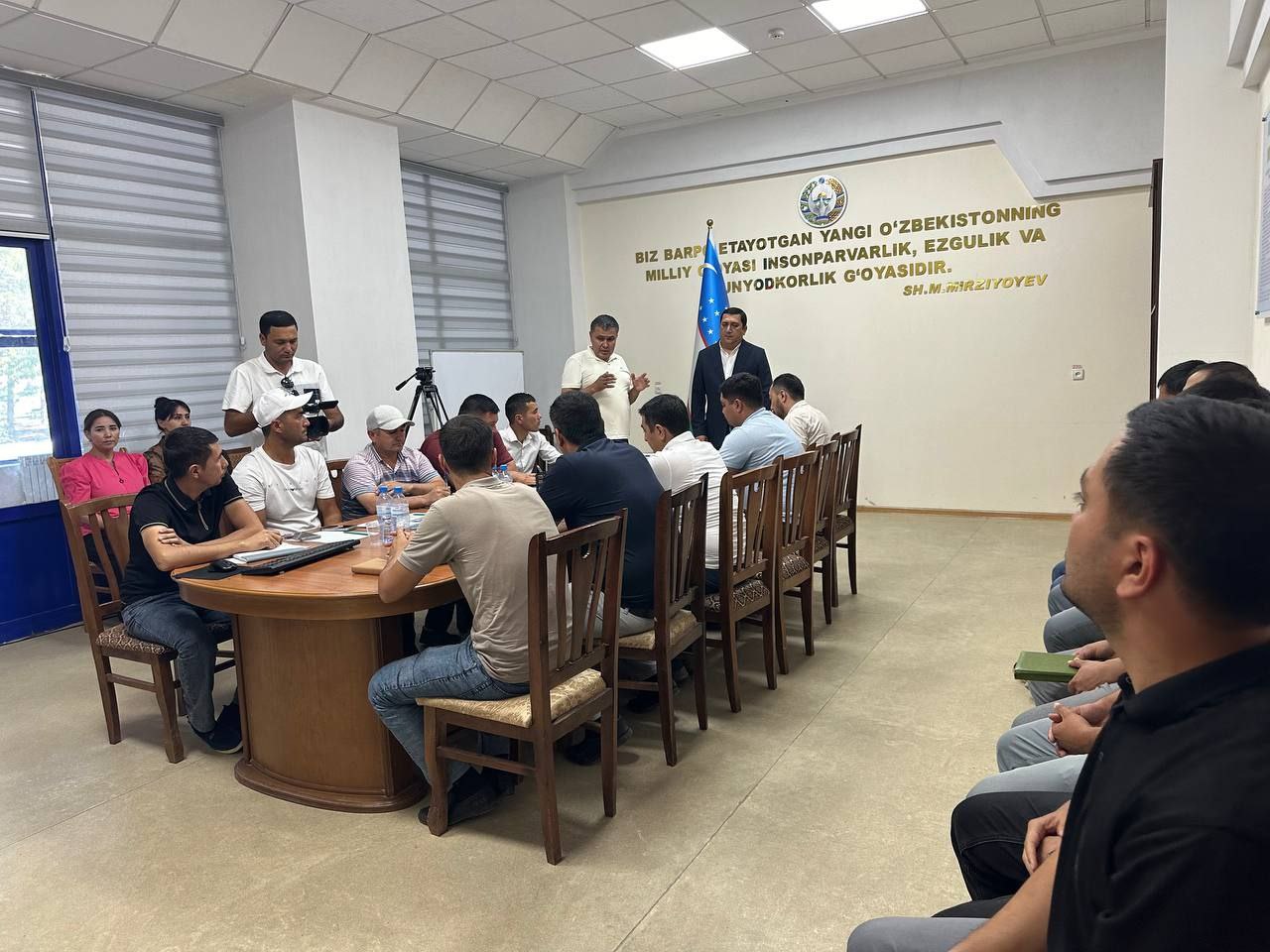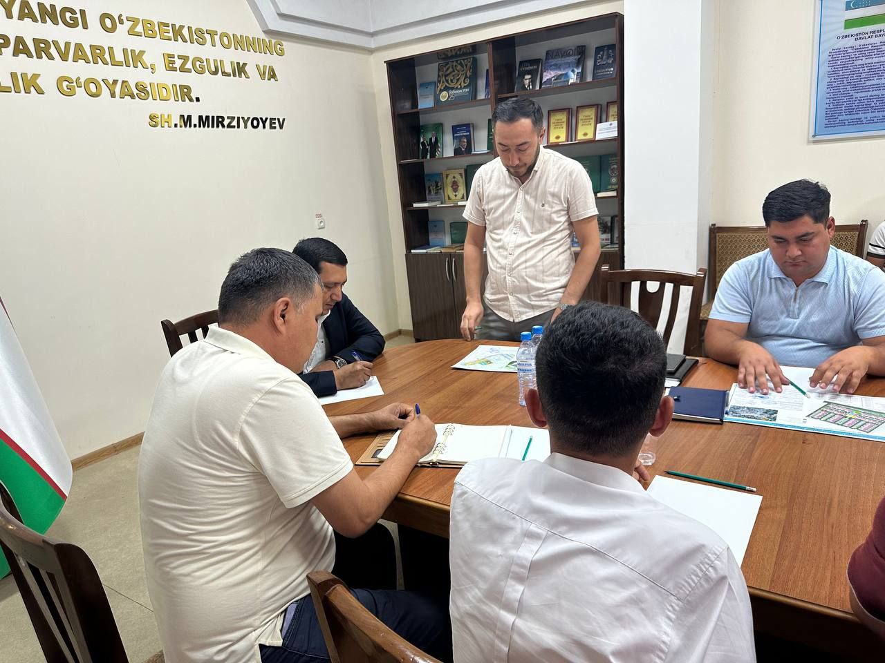 Navoiy viloyati Qurilish va uy-joy kommunal xo‘jaligi bosh boshqarmasida vazirlikning Pudrat bozori va mehnat muhofazasi bo‘limi boshlig‘i Bahodir Karimov boshchiligidagi mas‘ullar ishtirokida qurilish sohasi vakillari bilan uchrashuv o‘tkazildi.
