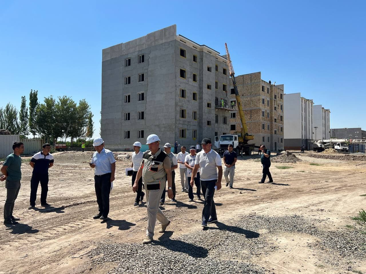 Qurilish va uy-joy kommunal xo‘jaligi vaziri o‘rinbosari Toir Alimatov Xorazm viloyatidagi qurilish obyektlarini tahliliy o‘rganib chiqmoqda