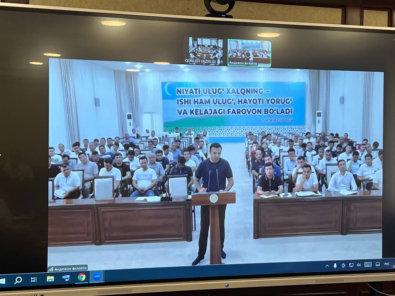 Avval xabar berib kelayotganimizdek, bugun ham rejaga koʻra Andijonda qurilish va kommunal sohada faoliyat olib borayotgan tadbirkorlar bilan ochiq muloqot boʻlib oʻtmoqda. Vazir oʻrinbosari tadbirkorlarga yuzlanar ekan, ushbu uchrashuv faoliyatda yuzaga kelayotgan barcha muammo va masalalarni ochiq bayon qilish va uning yechimini manzilli hal etish asosiy maqsad ekanligini alohida taʼkidladi.